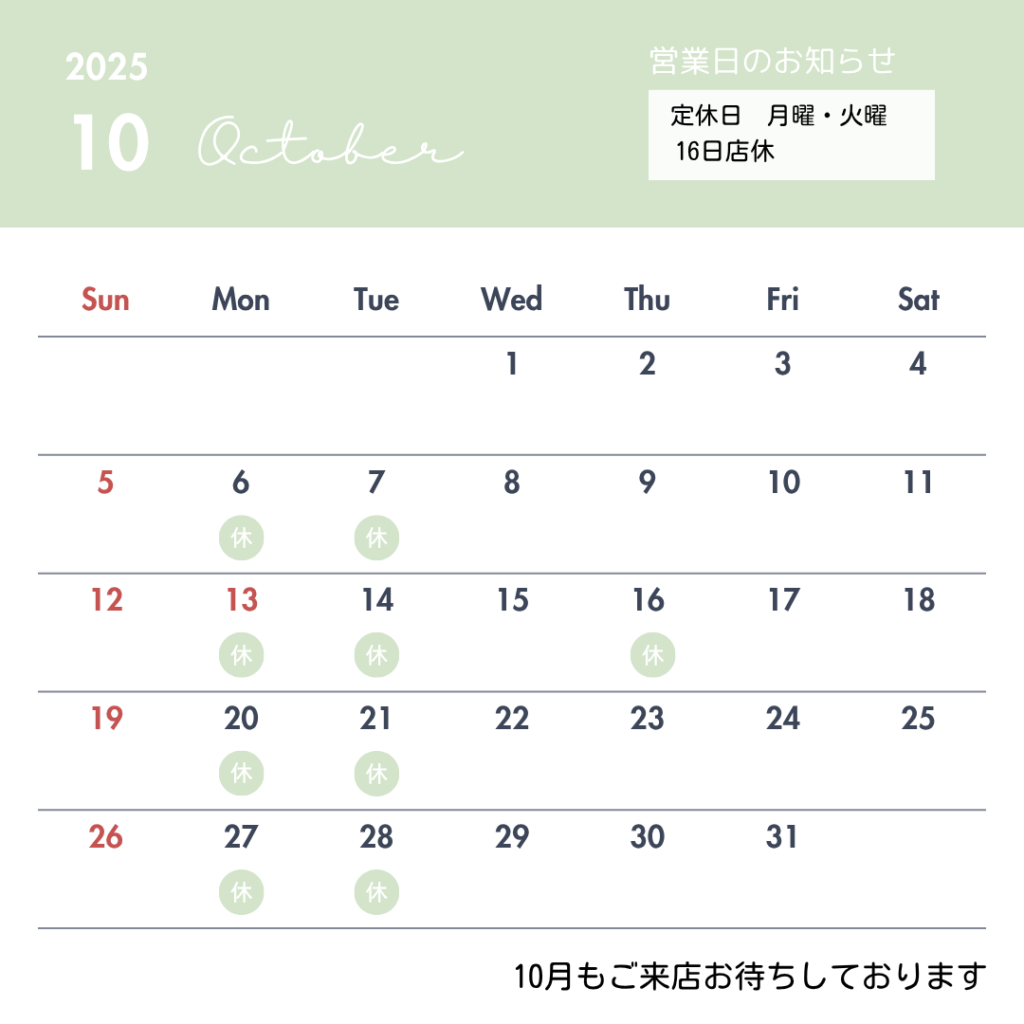 いつもご利用いただきありがとうございます。すっかり秋らしくなりました。過ごしやすくてお出かけにもいい時期ですね。やっと夏の間ためていた用事ができそうです。さて店…